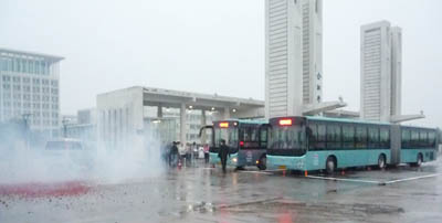 為了歡慶這一激動人心的時刻,我院于清晨5:58分在南艷湖校區南大門舉行了歡慶儀式,院后勤集團副總經理許進,合肥市公交集團第五車隊安全隊陶隊長及該集團相關負責人出席了首發儀式。
