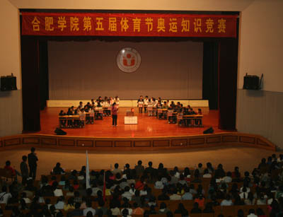 4月11日晚,由院團委、院基礎部、院學生會主辦的合肥學院第五屆體育節奧運知識競賽決賽在院南區致用禮堂火熱開展。教育系、計科系、經濟系、管理系、化工系和建工系六支初賽勝出的代表隊參加了此次決賽,院黨委書記陶登松、院團委副書記王?F等親臨現場觀賽。最終,教育系、管理系、建工系、化工系獲得本次決賽的前四名。