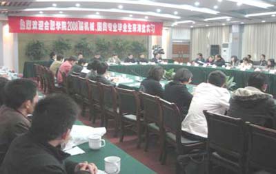 3月11日,在合肥市人才中心副主任童鴻鳴的陪同下,合肥學(xué)院學(xué)生處副處長、就業(yè)指導(dǎo)中心主任董承軍、經(jīng)濟系黨總支書記宣文和機械系黨總支書記劉健帶領(lǐng)我院經(jīng)濟系、機械系共44名08應(yīng)屆畢業(yè)生齊赴我院省外就業(yè)實習(xí)基地―浙江海鹽,在此進行為期兩個月時間的就業(yè)實習(xí)。