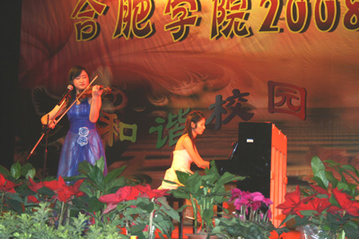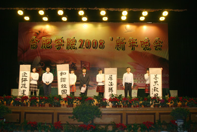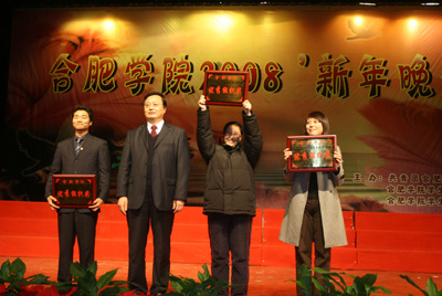 12月28日晚,我院南艷湖校區致用禮堂內座無虛席,近2000名師生觀看了合肥學院2008新年晚會暨第四屆校園科技文化藝術節閉幕式。院領導陶登松、趙良慶、鄭永紅、陳嘯、丁明出席第四屆校園科技文化藝術節幕閉式并觀看了晚會。