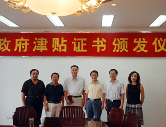 9月13日上午,省政府津貼頒發儀式在合肥學院黃山路校區行政樓三樓會議室舉行。合肥學院院長趙良慶、副院長蔡敬民,合肥市人事局局長張文誼、副局長司開龍、處長王淮培、副處長余魯萍出席頒發儀式。