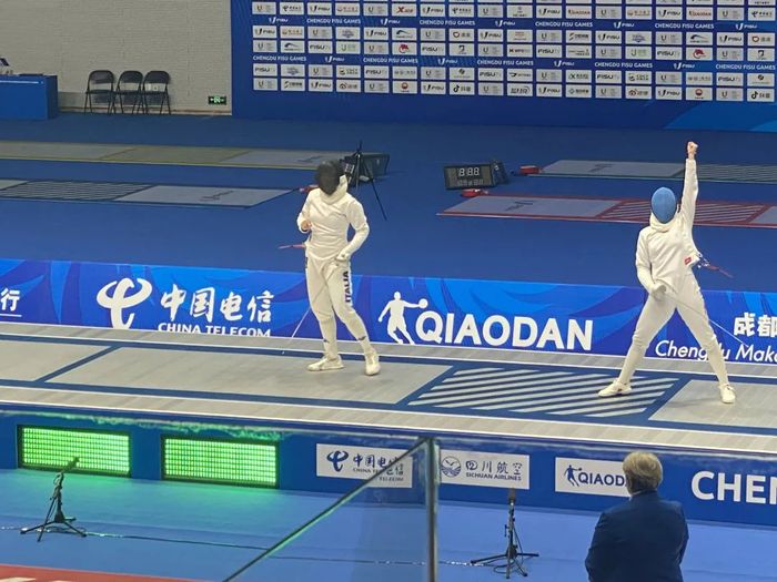 8月5日,成都大運會進入女子重劍團體賽爭奪。來自合肥學院的安徽姑娘唐君瑤和隊友許諾、施悅馨、李珊珊組成的中國隊面對意大利隊,以總比分34:28戰(zhàn)勝意大利隊奪得金牌。這也是我校第一個世界大學生運動會冠軍!為安徽奪得第四金!