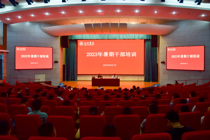 為深入學習貫徹習近平新時代中國特色社會主義思想和黨的二十大精神,持續推動學校各項事業高質量發展,8月7日至11日,我校暑期干部教育培訓分別在圖書館報告廳和岳西縣委黨校進行。學校處級干部、支部書記、組織員等200余人參加培訓。開班儀式由黨委副書記劉建中主持,院長吳春梅出席并做動員講話。