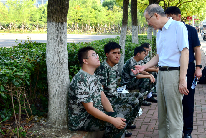 9月18日下午,黨委書記王其東與相關職能部門負責人一同前往軍訓現場慰問學生和教官。“適應學校的環境嗎?”“天氣炎熱,注意防暑降溫。”王其東關切地詢問新生身體健康情況,并鼓舞大家在軍訓期間增強個人體魄,厚植愛國情懷,培養集體主義精神和吃苦耐勞精神,為未來大學四年的學習生活打下一個堅實的基礎。