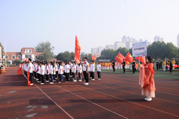 劉建中致開幕詞。他表示,體育承載著國家強盛、民族振興的夢想,體育強則中國強。學校始終秉承“以學生為本”的理念,堅持把“健康第一,終身體育”作為體育工作的目標,不斷推進體育課教學俱樂部制改革,讓每個學生都能找到適合自己的體育鍛煉項目,讓學生喜歡體育,樂于鍛煉,并在體育鍛煉中培養健康意識、學會鍛煉方法、弘揚體育精神。我校體育教育教學俱樂部改革穩步推進,成績顯著,我校學子在國際國內各類體育賽事中取得較多優異成績。今年8月份召開的成都第31屆世界大學生夏季運動會上,我校唐君瑤同學獲得女子重劍團體賽金牌、蘭明豪同學獲得男子重劍團體賽銀牌,充分展示了我校高水平運動員的培養成果,為母校贏得了榮譽。體育不僅強健了我們的身體素質,也豐富了我們的校園生活,也為學校各項事業發展和“高水平應用型大學建設”注入了生機活力。最后,他預祝本屆田徑運動會取得圓滿成功,號召同學們以民族復興為己任,以拼搏進取為常態,在酣暢的運動中,享受超越自我的人生樂趣;在你追我趕的競爭中,錘煉力爭上游的人生斗志;在齊心協力的合作中,詮釋互助共贏的人生意義。