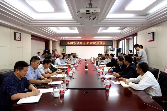 劉玉杰介紹了阜陽經濟社會發展情況。他說,當前阜陽正處于厚積薄發、動能強勁、大有可為的上升期、關鍵期,按照省委要求,要勇擔“建設長三角區域重點城市和帶動皖北、支撐中原城市群發展的重要增長極”使命任務,充分發揮皖北龍頭城市作用,勇當皖北全面振興排頭兵,加快建設“三地一區”“十個區域性強市”。希望雙方共同推動產學研項目優先在阜合園區落地轉化,在制造業發展、文旅融合、淮河文化研究、高等研究院共建、合作辦學、國際交流等方面深化務實合作,努力探索校地、校校融合發展新路徑。