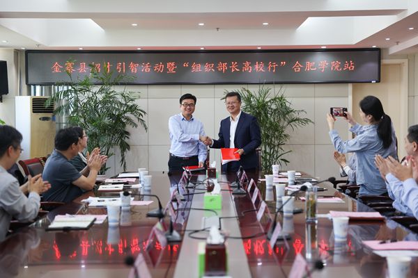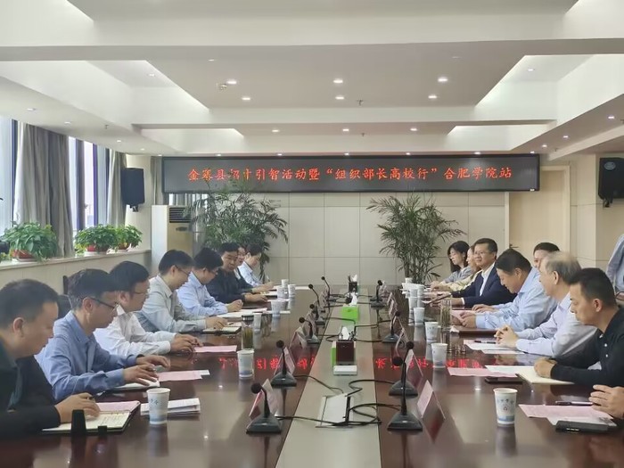 11月3日上午,金寨縣委副書記胡勁松,縣委常委、組織部部長倪秀鋒一行來我校開展招才引智暨“組織部長高校行”活動。省教育廳副廳長解平到會指導,校黨委書記王其東、黨委副書記劉建中出席會議,學生處、先進制造工程學院、人工智能與大數據學院相關負責人參加會議。
