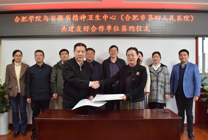 為加強醫(yī)校合作共建,進(jìn)一步推進(jìn)學(xué)校心理健康教育工作,11月29日下午,我校與安徽省精神衛(wèi)生中心(合肥市第四人民醫(yī)院)簽訂了共建友好合作單位戰(zhàn)略協(xié)議。我校黨委副書記劉建中,合肥市第四人民醫(yī)院副院長羅蓓蓓,主任醫(yī)師、名醫(yī)工作室負(fù)責(zé)人季益富,合肥市精神衛(wèi)生防治中心副主任徐小童等出席簽約儀式,校黨政辦、宣傳部、學(xué)生處、教育學(xué)院等相關(guān)單位負(fù)責(zé)人參加儀式。