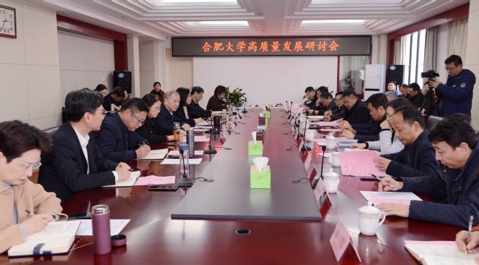1月9日下午,合肥大學在南艷湖校區召開高質量發展研討會。合肥市人大常委會黨組副書記王文松、安徽省委改革辦專職副主任李德貴、安徽省科技廳二級巡視員王靜、省社科聯副主席周祥飛、安徽理工大學常務副校長余玉剛,合肥工業大學、省委宣傳部理論處、合肥市發改委、合肥市教育局、合肥市科技局等單位的領導、專家應邀出席會議,就合肥大學未來發展建言獻策。校黨委書記王其東、校長吳春梅、副校長陳秀,相關職能部門和二級學院負責人參加會議,研討會由吳春梅主持。
