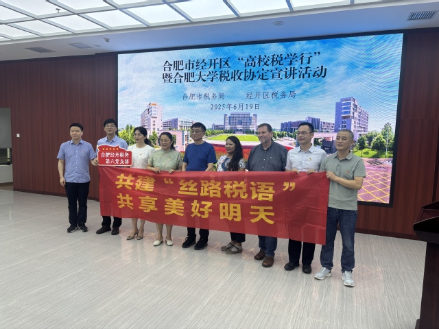 6 月 19 日上午,國際交流合作處處、財務處聯合合肥經開區稅務局在大學生活動中心一樓會議室舉辦“高校稅學行”暨稅收協定宣講活動。合肥市稅務局國際處、經開區稅務局相關負責人及稅務干部,國際交流合作處副處長孔春華、財務處副處長唐艷等部門負責人,外籍教師、留學生代表及對國際稅收政策感興趣的師生參與活動。