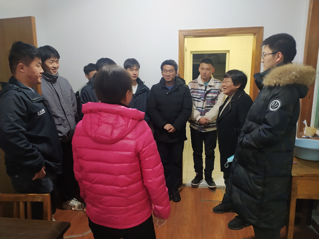2022年1月20日晚7:30,先進(jìn)制造工程學(xué)院黨委書(shū)記杜娟、副書(shū)記李秀娟、學(xué)工辦負(fù)責(zé)人梅志強(qiáng)到一期留學(xué)生公寓走訪看望了我院留宿學(xué)生。目前,我院有9名同學(xué)因在大眾公司實(shí)習(xí)暫時(shí)留宿學(xué)校。他們白天在公司實(shí)習(xí),晚上回校居住。
