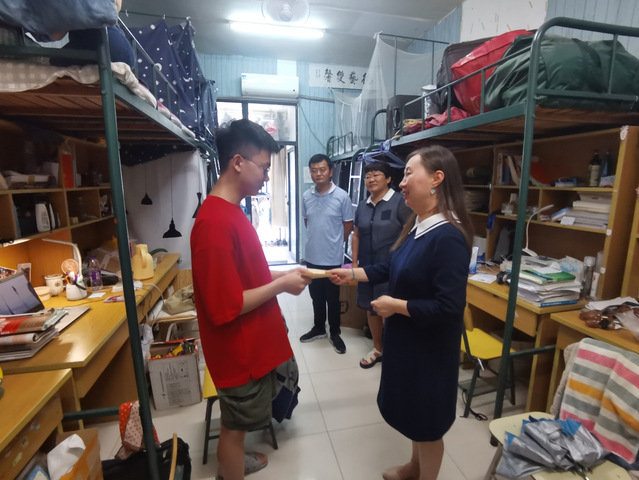 走訪中,領導老師與同學進行深入交談,詳細了解同學們在家庭、思想、學習、生活以及黨支部開展活動等方面的情況,把國家的關懷、學校的關愛、老師的關心帶給學生。值得一提的是,三位學生黨員當時都正在觀看慶祝香港回歸25周年的新聞報道。杜娟書記表達了對三位同學的肯定并對學生黨員提出以下幾點希望:一是要牢記身份和責任,結合自身條件組織開展活動,集思廣益,提煉共識,凝心聚力,銳意進取,真正發揮學生黨員的模范帶頭作用;二是要充分發揮黨員聯系老師和學生的紐帶作用,關心、團結同學,誠心誠意的為師生服務,切切實實履行好自己的入黨誓詞,及時向組織匯報自己和同學們的生活學習狀態。三是希望學生黨員自己更要加強政治理論學習,強化黨員意識,掌握技能、提升能力、飲水思源,心懷感恩,以更高的標準嚴格要求自己,將來努力回報家人、回報社會、回報國家。三位學生黨員均對黨組織的關懷與幫助表示衷心的感謝,表示一定會奮發學習,以實際行動筑牢夢想不忘初心,牢記使命不負時代,以優異的成績回報組織的關懷,回報學校的培育之恩,爭做優秀學生黨員。