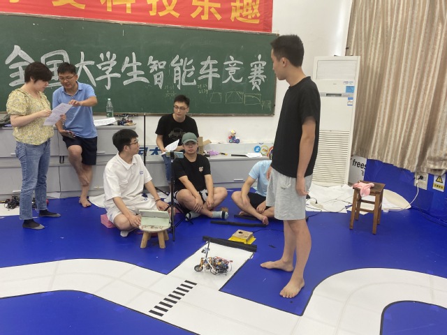 留校參賽學(xué)生們沒(méi)有因炎熱暑期而停下腳步,而是如火如荼進(jìn)行備戰(zhàn),同時(shí)指導(dǎo)教師們每天陪伴學(xué)生們,悉心指導(dǎo)、精心安排,帶著同學(xué)們發(fā)現(xiàn)問(wèn)題、解決問(wèn)題,享受科技創(chuàng)新的樂(lè)趣。學(xué)院黨政領(lǐng)導(dǎo)關(guān)心、支持留校參賽師生,經(jīng)常進(jìn)實(shí)驗(yàn)室走訪、看望師生、了解進(jìn)程、關(guān)心師生生活等。為了第一時(shí)間解決師生問(wèn)題,每天安排至少一名黨政領(lǐng)導(dǎo)值班。師生們表示盡心盡責(zé)、全力以赴精心準(zhǔn)備,為院爭(zhēng)光、為校爭(zhēng)光。