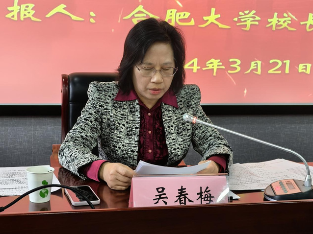 3月21日上午,我校開學第一課系列活動之“兩會精神傳達及報告會”在一期六棟報告廳舉行。全國人大代表、合肥市政協副主席、合肥大學校長吳春梅作專題報告,經濟與管理學院黨委書記倪澤強主持,經濟與管理學院師生代表到場聆聽。