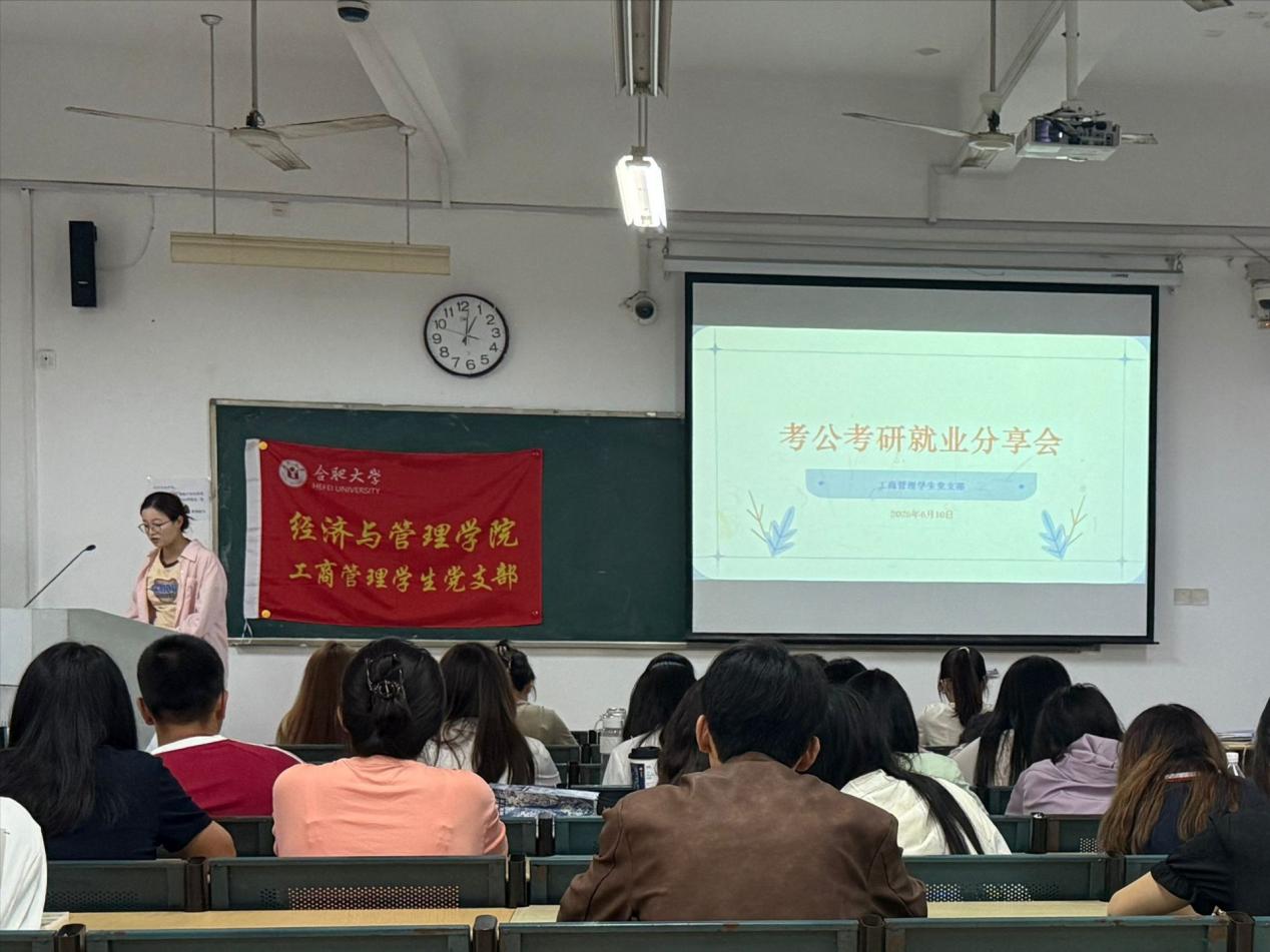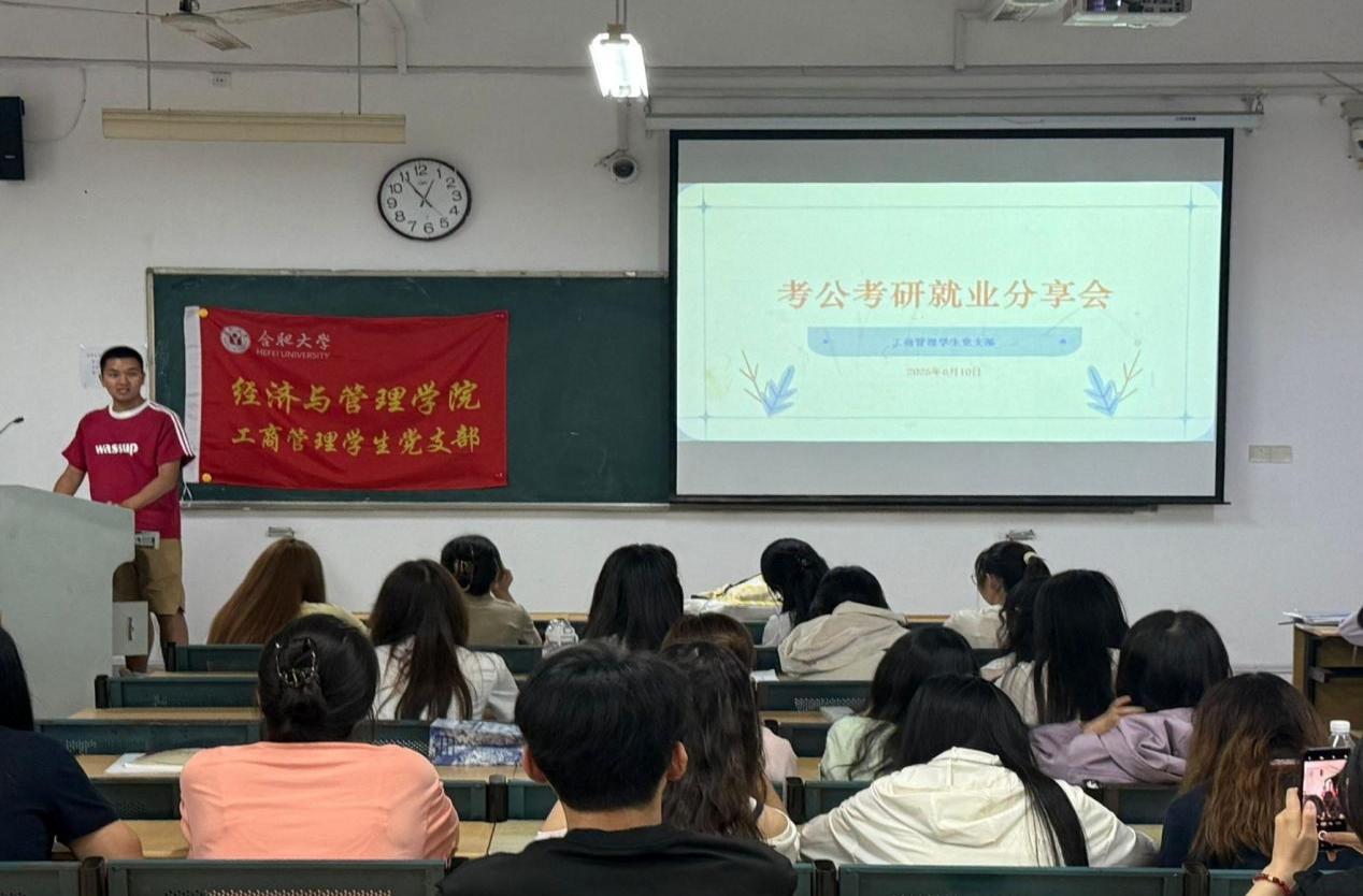 為了加強考研考公經驗交流,以考促就業,6月10日,經濟與管理學院工商管理學生黨支部和團支部學生在博學樓C座101室順利開展了“考公考研考研就業分享會”主題黨日活動。