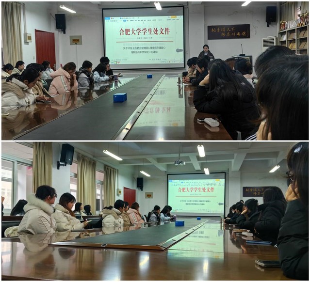 為進一步開展我院心理健康教育工作,提升心理委員的專業素養與工作效能,12月23日,經管學院心理委員工作研討會在6棟223教室召開,會議由經管學院心理健康教育負責人白杉主持,學院各年級心理委員參加研討。 會議首先進行了《合肥大學心理委員及寢室心理聯絡員職責規定》的專題學習。通過學習,心理委員們對自身職責有了更清晰的認識,為后續工作的順利開展奠定了基礎。隨后,參會的心理委員們圍繞如何更好地履行職責、提升心理健康教育效果等議題展開了深入研討。研討中,心理委員們積極發言,分享了各自的工作經驗和心得,并對存在的問題提出了建設性的意見和建議。會議最后,白杉對研討會進行了總結,鼓勵大家繼續保持高度的責任心和使命感,將所學所得應用到實際工作中,為同學們提供更加專業、貼心的心理支持。