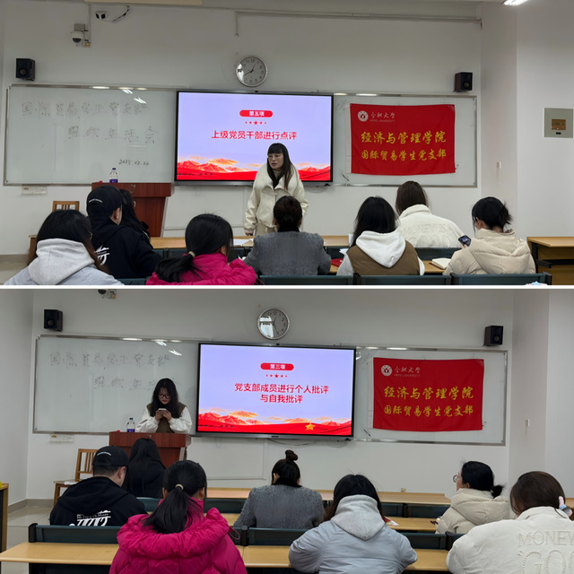 2月24日,國際貿易學生黨支部順利開展2024年度組織生活會和民主評議黨員工作。 首先,黨支部書記劉丹青帶領全體黨員學習領會黨的二十屆三中全會精神,學習《中共中央辦公廳關于推進黨紀學習教育常態化長效化的意見》(中辦發〔2024〕62號),與會黨員就如何將理論學習成果轉化為推動專業學習和工作實踐的動力進行了熱烈討論。會議強調要繼續深入學習貫徹習近平新時代中國特色社會主義思想,鞏固深化黨紀學習教育成果,綜合發揮黨的紀律教育約束、保障激勵作用,為進一步全面深化改革、推進中國式現代化提供堅強紀律保證。 隨后,黨支部書記劉丹青代表黨支部報告一年以來工作情況,通報黨支部檢視剖析問題情況。全面回顧了過去一年黨支部在思想建設、組織建設、作風建設等方面取得的成效,深入分析了存在的問題和不足,并提出了下一步的工作計劃和改進措施。接著,黨支部成員結合自身實際,開展自我批評,每位黨員都本著實事求是的態度,認真剖析了自己在思想、學習、工作、作風等方面存在的問題,并表達了改正的決心和措施。通過擺事實、講表現的方式開展黨員互評,直截了當提具體意見。 自評與互評結束后,經濟與管理學院副院長于娜對組織生活會開展情況進行點評。于娜對黨支部的工作給予了充分肯定,并對支部黨員和支部工作提出了具體要求與期望。會議最后,發放測評表,對黨支部和黨員進行民主測評,并由黨支部書記總結會議情況。 此次組織生活會和民主評議黨員工作的順利開展,不僅增強了黨支部的凝聚力和戰斗力,也提升了黨員們的責任感和使命感。