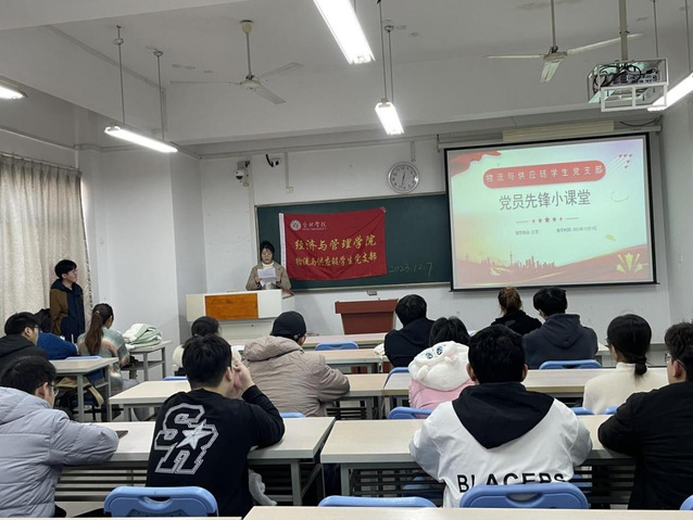 為深入學(xué)習(xí)貫徹習(xí)近平新時代中國特色社會主義思想和黨的二十大精神,落實新時代黨建要求,做好黨員發(fā)展工作,提高入黨積極分子思想覺悟,經(jīng)濟與管理學(xué)院各黨支部于12月上旬分別聯(lián)系第九期各專業(yè)的入黨積極分子開展了內(nèi)容豐富的主題黨日活動。 物流與供應(yīng)鏈學(xué)生黨支部組織入黨積極分子集中收看了2023年度法制人物方燕的故事,隨后開展了黨員先鋒小課堂。工商管理學(xué)生黨支部組織入黨積極分子集中收看了《黨課開講啦》,入黨積極分子積極分享了個人感悟。國貿(mào)學(xué)生黨支部召集入黨積極分子就入黨動機、黨性認(rèn)識開展了專題的交流研討活動。經(jīng)濟學(xué)學(xué)生黨支部組織入黨積極分子集中收看了2023年度法制人物方燕的故事,入黨積極分子就視頻內(nèi)容進行了分享與交流。金融學(xué)學(xué)生黨支部就習(xí)近平總書記關(guān)于長三角一體化的重要論述與入黨積極分子進行了深入的交流討論。會計學(xué)學(xué)生黨支部為入黨積極分子詳細講解了發(fā)展黨員工作流程,隨后觀看了電教片。 各黨支部聯(lián)系入黨積極分子開展主題黨日活動提升了同學(xué)們的黨性認(rèn)識,端正了同學(xué)們的入黨動機。黨支部組織入黨積極分子參加主題黨日活動,在實踐中不斷促進入黨積極分子的黨性修養(yǎng),不斷強化入黨積極分子的使命和擔(dān)當(dāng)。 (經(jīng)濟與管理學(xué)院 撰稿人:沈茹茹 審稿人:王晨森)