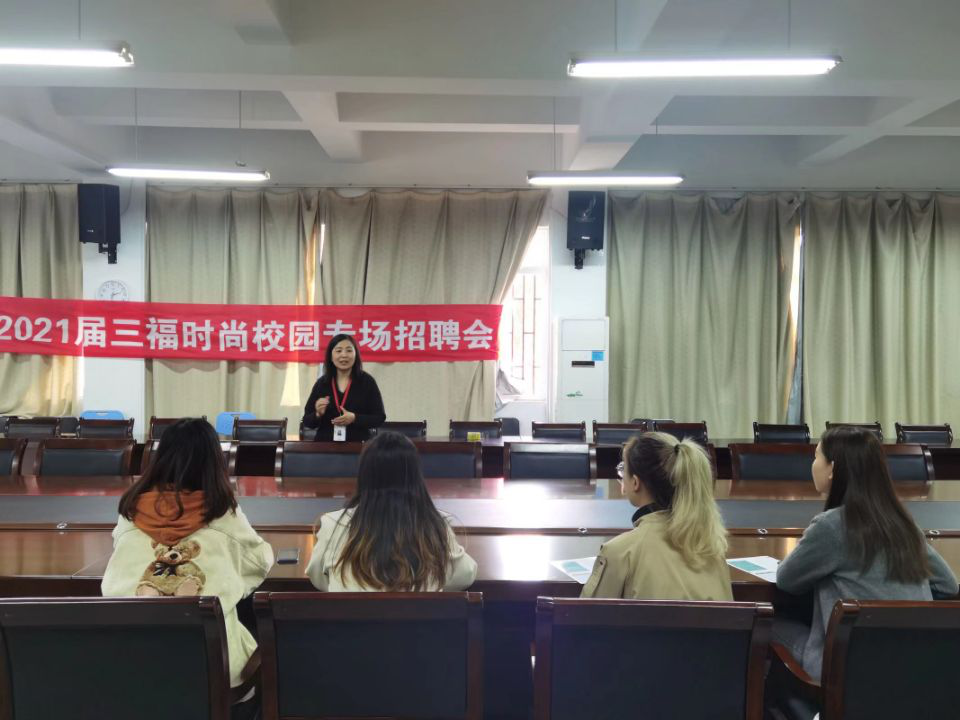 2020年10月22日,三福時尚2021屆校園演講會召開。三福時尚招聘主管趙蘭擔任主講人,他們建議在校大學生盡早了解自己的專業知識和就業方向。在座學子積極投遞簡歷,參與面試環節,