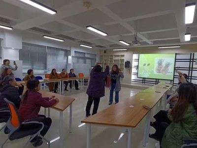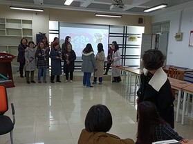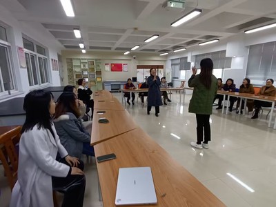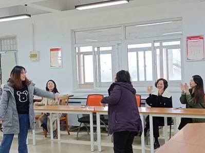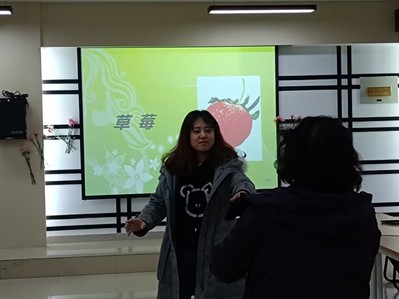 活動前,分工會委員精心準備好PPT,鮮花場地,道具材料等。活動每兩人一組,共分為8組進行,詞條涉及家用電器、日用品、水果、體育用品等日常接觸比較多的物品。表演者開動腦筋用肢體動作和相關描述向對方傳達意思,在規定時間內猜出最多的一組即為獲勝。活動一開始,大家就興致勃勃地玩開了,第一組小組還沒有進入狀態,答出來的謎底總是不對,臺下老師們摩拳擦掌、躍躍欲試;后面的小組配合默契,有一組的謎底“猴子”,一名老師就模仿孫悟空,隊友很快給出答案,大家也被夸張的表演惹得捧腹大笑,同時又報以熱烈的掌聲。