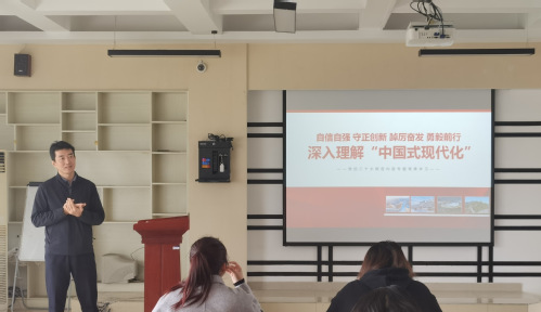 3月29日,旅游與會展學院于一區博學樓A座407教室開展以深入理解“中國式現代化”為主題的黨課培訓。本次課程由旅游與會展學院黨委副書記孫靜宇主講,學生第二黨支部書記董敏及黨員參與此次學習。
