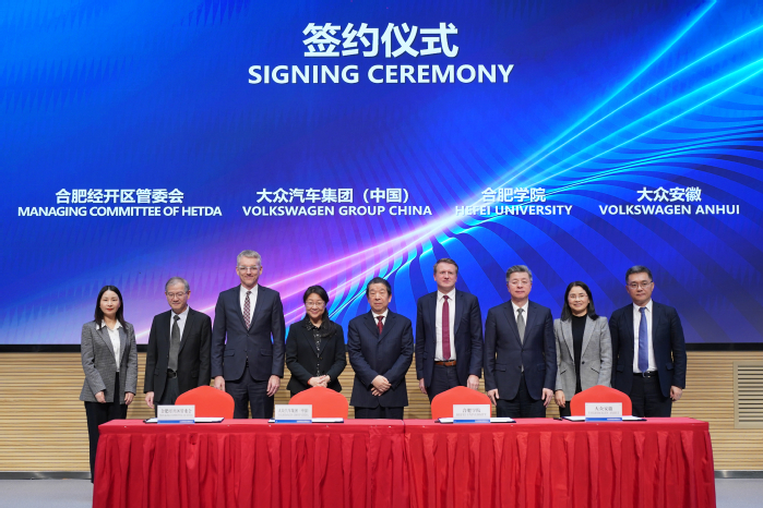 為推動產(chǎn)教深度融合、校企協(xié)同育人,打造“雙元制”高等教育合作范例,2023年2月20日,大眾學(xué)院簽約揭牌儀式在合肥市中德合作創(chuàng)新園隆重舉辦。大眾汽車集團(tuán)(中國)執(zhí)行副總裁傅勤彥(Jens Pfitzinger),大眾汽車(安徽)有限公司首席執(zhí)行官葛皖鏑(Erwin Gabardi),合肥學(xué)院黨委書記王其東,合肥市委常委路軍,省委教育工委委員、省教育廳副廳長儲常連出席儀式并致辭。儀式由合肥學(xué)院院長吳春梅主持。