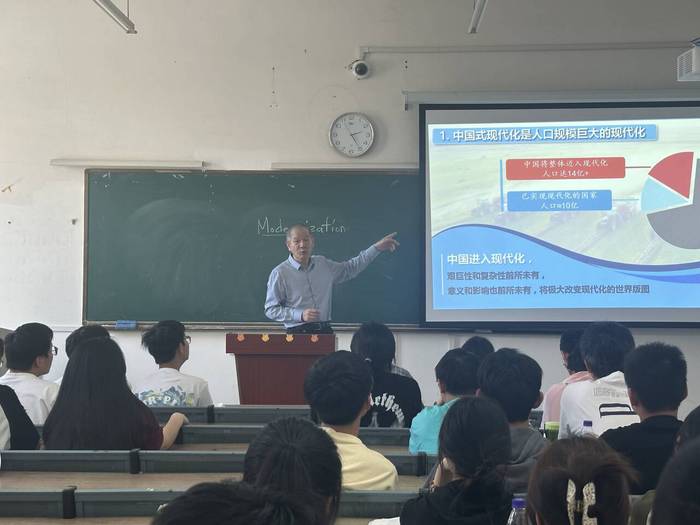 5月14日下午,校黨委書記王其東以“讀懂中國式現代化”為題,為23級計算機科學與技術、22級數據科學與大數據技術(雙元制大眾班)、22級無機非金屬材料工程(雙元制大眾班)、22級智能制造工程(雙元制大眾班)學生講授形勢與政策課,受到熱烈歡迎。